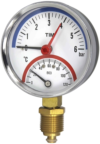 Термо-манометр радиального подключения TIM 1/2″ — 6 бар