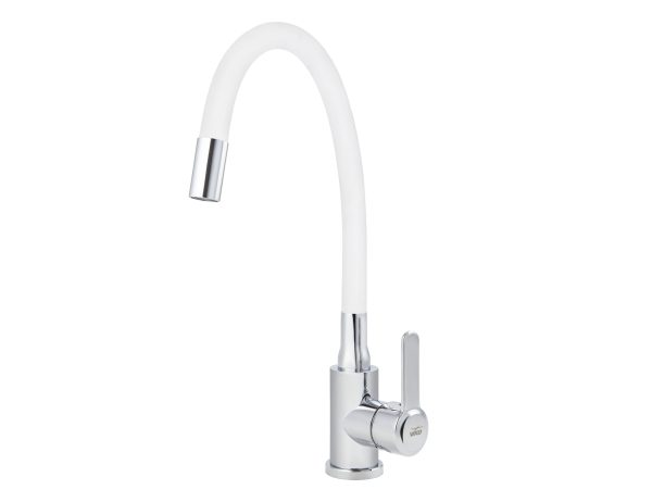 Смеситель VIKO кухня боковой с белым гибким изливом Ø35, нерж. сталь, с гайкой, корпус: хром