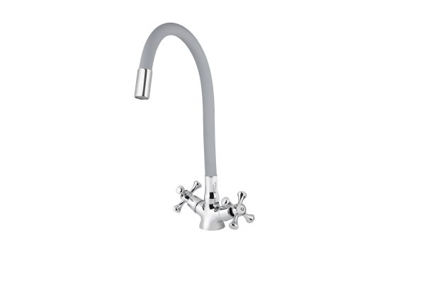 Смеситель VIKO кухня крест керамика с cерым гибким изливом с гайкой