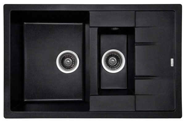 Мойка-Гранит «KAISER» (двойная) 780x500x190 черный-мрамор