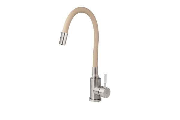 Смеситель VIKO кухня боковой с бежевым гибким изливом Ø35 с гайкой, (нерж. сталь), корпус: серебро
