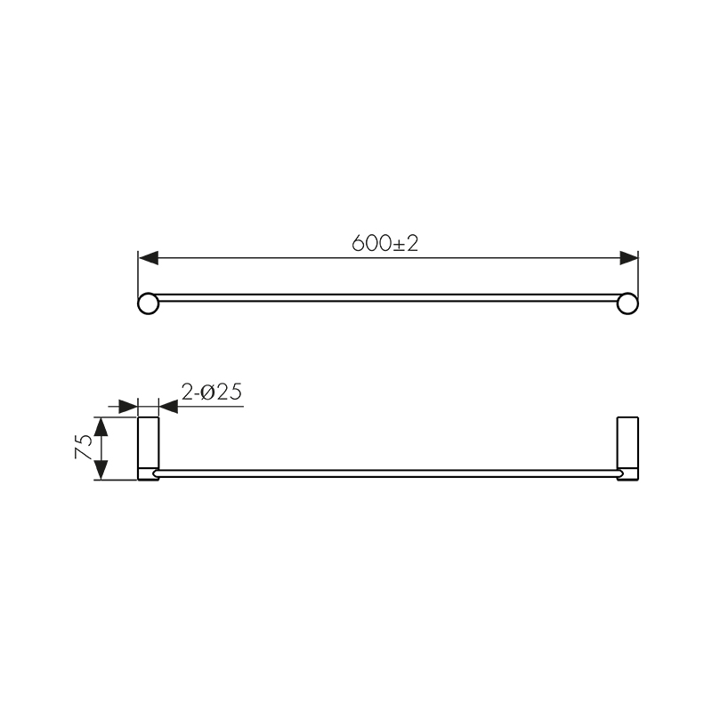 Держатель полотенца прямой KAISER Vita 600х75мм /Нержавейка/Чёрный матовый