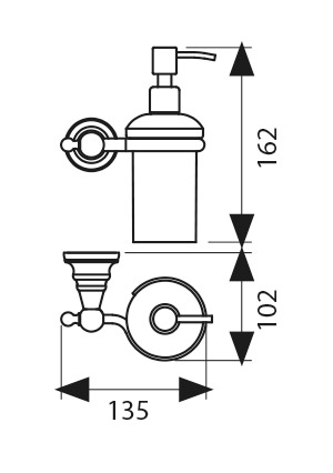 2210 Дозатор для жидкого мыла настенный (стекло) KAISER хром (латунь)