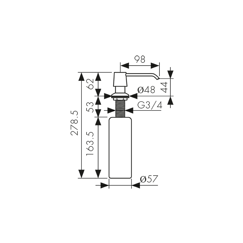 3014 Дозатор KAISER для моющих средств встр., 350мл, пластик/латунь, Sand Beige