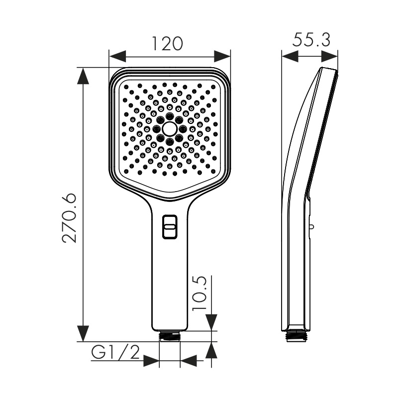 Душевая лейка KAISER 3-х режимная, 120х120х270мм, в коробке /Пластик/Воронёная сталь