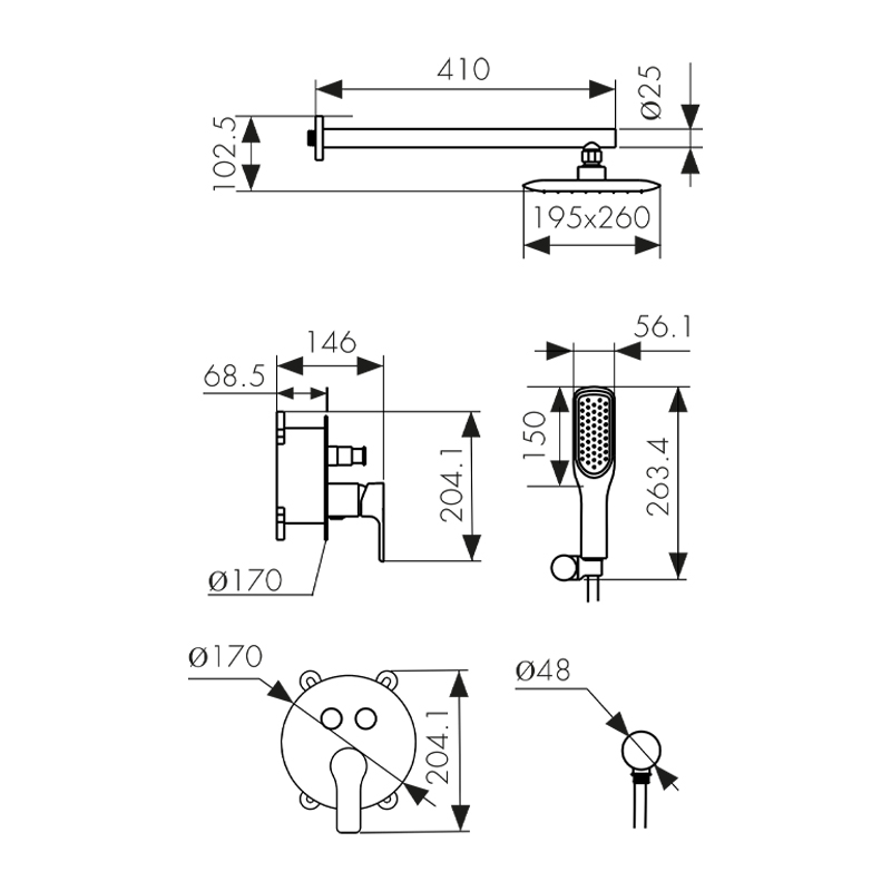 Душевая система KAISER Rios скрытого монтажа (стац. лейка 250х190) /Хром