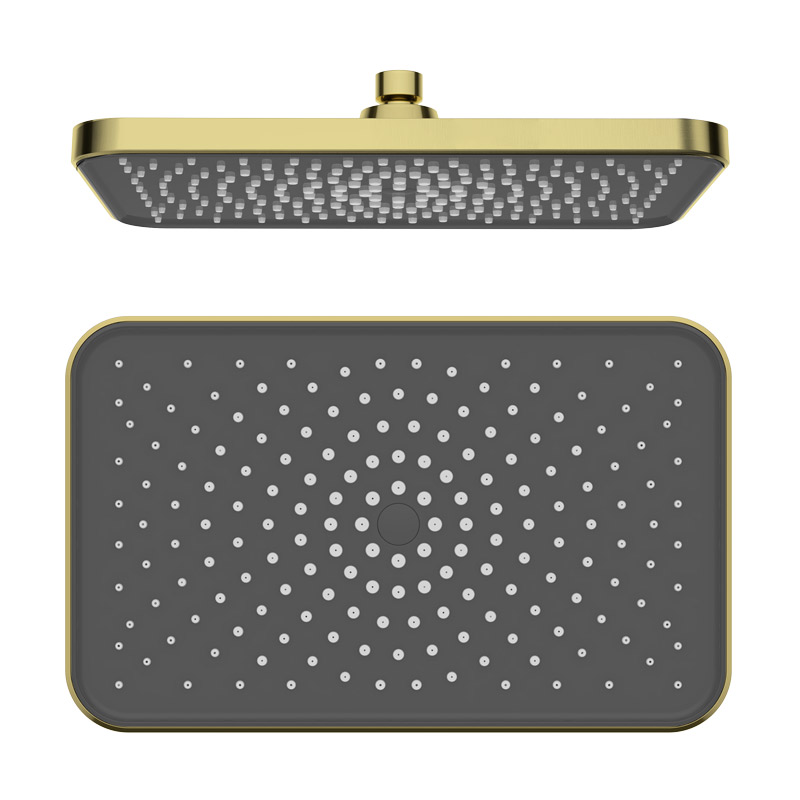 Душевая система KAISER Sano с термостатом, скрытого монтажа, поворот. держатель (3-jet, стац. лейка 320×200х16) /Шлифованное золото