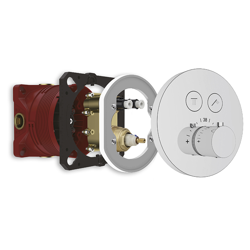 Душевая система KAISER Sano скрытого монтажа с термостатом. Поворотный держатель, совмещённый со шланговым подключением.