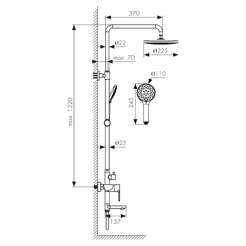| Размер ручной лейки, мм | |