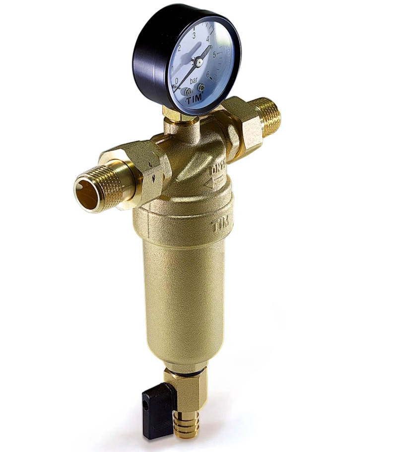 Фильтр тонкой очистки 3/4 TIM с манометром (латунь) /JH-2001