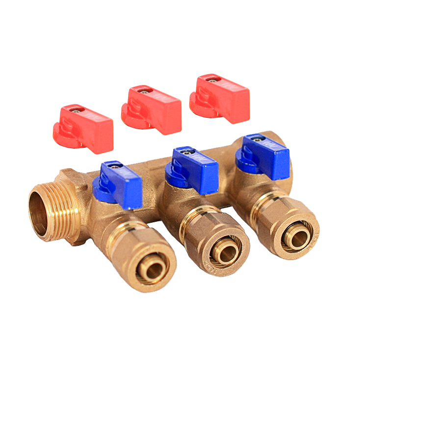 Коллектор TIM м/п 3/4″ х 16 х 3 вых. универсальный (кр+син ручки)
