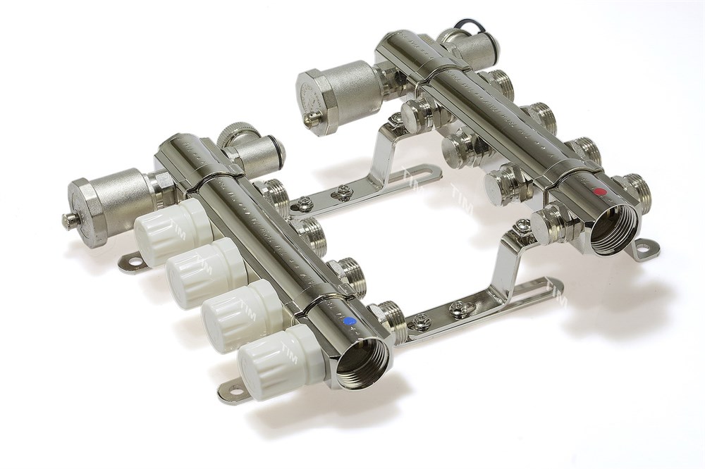 Коллекторная группа с воздухоотводчиком TIM 1″, 4 хода, латунь