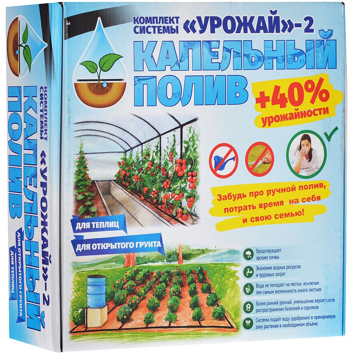 Данный комплект рассчитан для полива упорядоченных посадок овощей, цветов и кустарников, а также бахчевых, рассчитан на площадь полива от 40 м2 до 50 м2