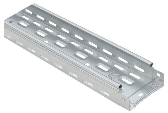 Открытый способ прокладки кабельных трасс с помощью металлических лотков позволяет в дальнейшем легко обслуживать электрическую и слаботочную систему и развивать ее. Конструкция замка имеет трубчатую (круглую на поперечном срезе) форму, не имеющую острых кромок. Трубчатая форма замка значительно улучшает прочностные характеристики лотка. Ассортимент типоразмеров лотков и аксессуаров позволяет спроектировать кабельную трассу любой степени сложности.