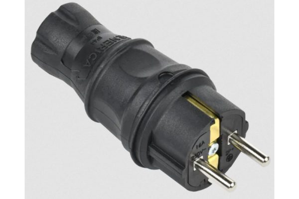 Вилка каучук с боковым вводом з/к 16А IP44 черная (упак. 1/320) GENERICA