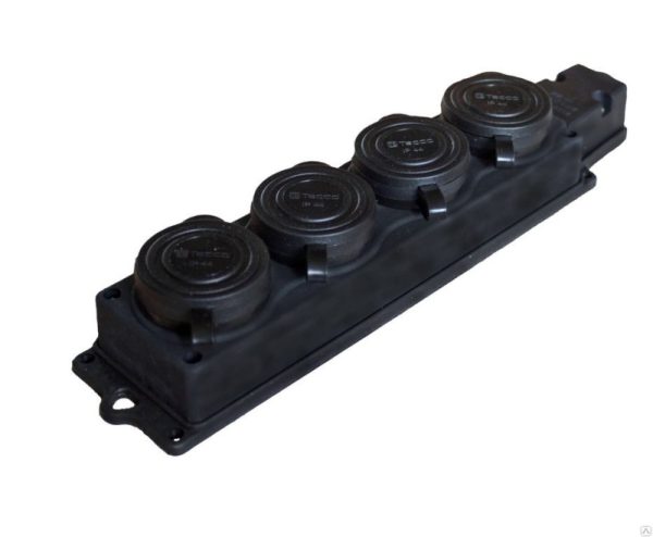 0,00 ₽КОЛОДКА ШТЕПСЕЛЬНАЯ 4-ГН. С/З С КРЫШКАМИ 16А, IP44 (КАУЧУК) (10/100)