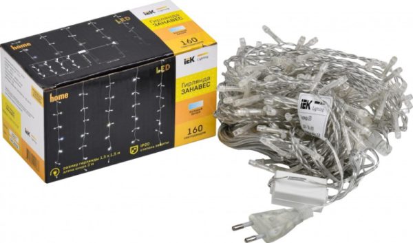 0,00 ₽LIGHTING Гирлянда сеть 1,5х1,5м 160 светодиодов белый свет IP20 прозрачный шнур 3м 230В контроллер 8