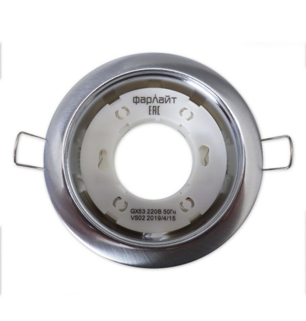 0,00 ₽Светильник встраиваемый GX53 220 В 50 Гц сатин (матовый хром) (с термокольцом, инд. пак ) Фарлайт (1