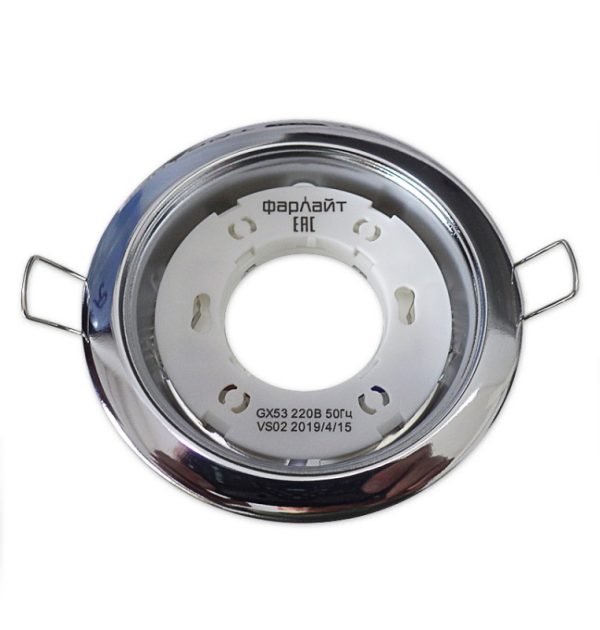 0,00 ₽Светильник встраиваемый GX53 220 В 50 Гц хром (с термокольцом, инд. пак ) Фарлайт (100/10)