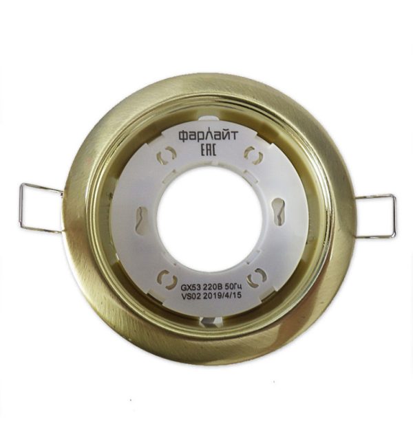 0,00 ₽Светильник встраиваемый GX53 220 В 50 Гц матовое золото (с термокольцом, инд. пак ) Фарлайт (100/10)