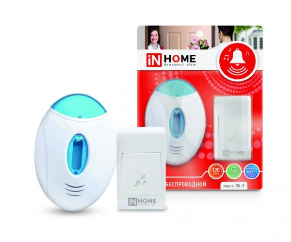 Войдите, чтобы увидеть ценыЗвонок беспроводной ЗБ-4 32 мелодии 120м сетевой с цифр. кодир. с кнопкой БЕЛЫЙ IN HOME