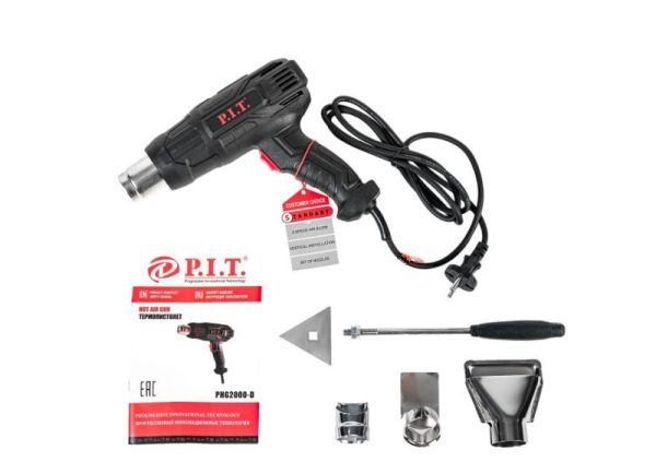 Фен технический PIT PHG2000-D 2000Вт, 350-600*С,350-500л/мин 2 скор насадки