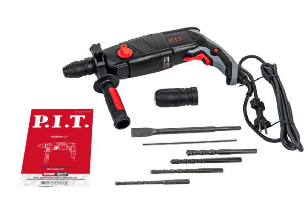 Перфоратор PIT PBH24-C1 850Вт, 2,8Дж.,3 реж, SDS+ 0-1100об/мин +быстросъемный патрон