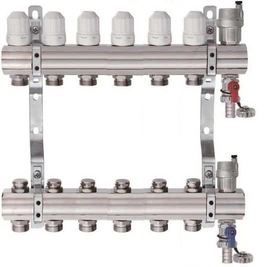 Коллекторная группа (отопл) без расходомеров и кранов 1″, 6 хода TIM, нерж, (КВАДРАТ)