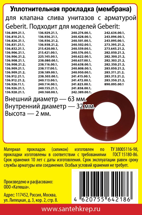 Набор САНТЕХНИК №32 силиконовая мембрана арматуры Gustavsberg