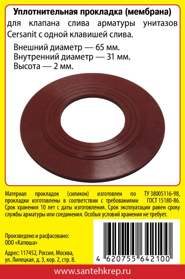 Прокладка между бачком и чашей для унитаза КЕРСАНИТ» /Wm01.655/