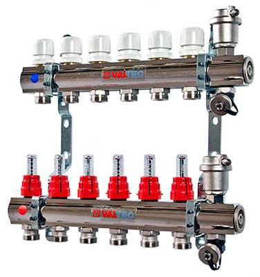 Коллекторная группа нерж.Valtec встр. расх. в сборе 1″ х 11вых ЕК
