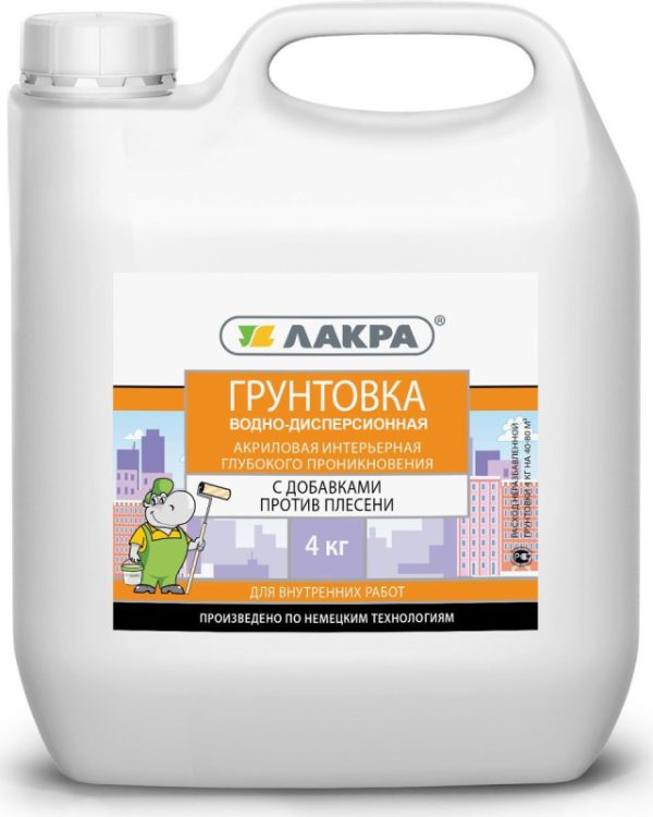 Грунт интерьерный глубокого проникновения Лакра 4 кг.