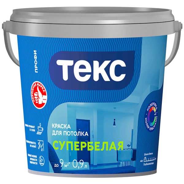 Краска ТЕКС ПРОФИ для потолка СУПЕРБЕЛАЯ 0,9л
