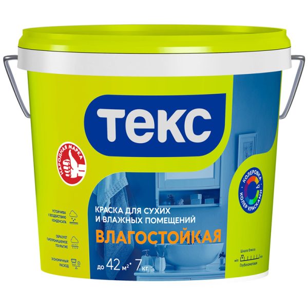 Войдите, чтобы увидеть ценыКраска ТЕКС УНИВЕРСАЛ для сухих и влажных помещений ВЛАГОСТОЙКАЯ 7кг