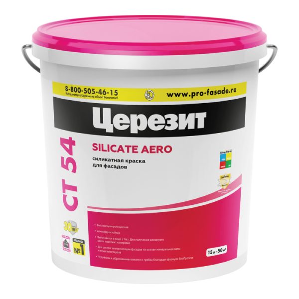 Краска силикатная фасадная ЦЕРЕЗИТ СТ 54 ВД база 15л