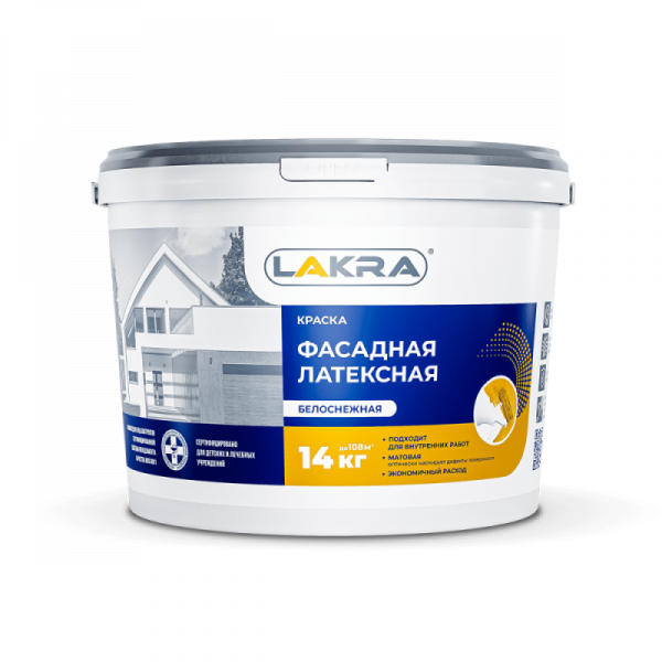 Краска Лакра фасадная всесезонная до -20°С белый 14кг Л-С