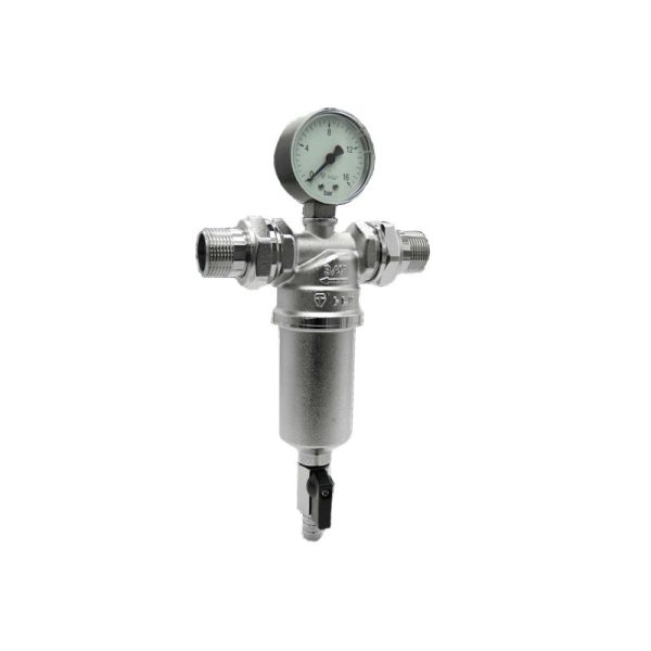 Фильтр прямой промывной с манометром, латунный 1/2 «HLV»