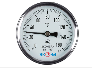 Термометр биметаллический ЭКОМЕРА БТ-1-63, 0-160С, накладной