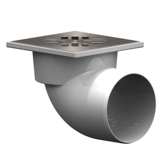Трап горизонтальный выпуск 110мм 150*150мм нерегулируемый решетка нерж. сталь гидрозатвор