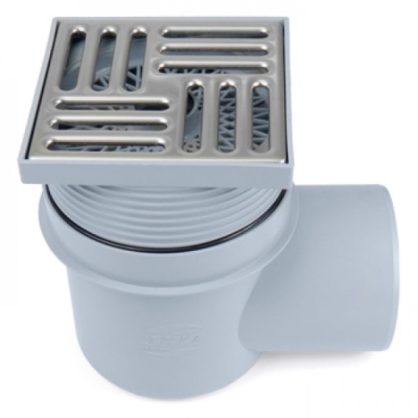 Трап горизонтальный выпуск 110мм 150*150мм нерегулируемый решетка нерж. сталь гидрозатвор