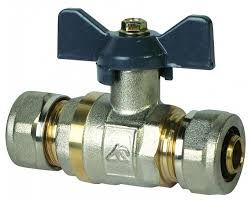Кран шаровый для МП труб 20х20мм цанга-цанга бабочка никель Aqualink (10/100)