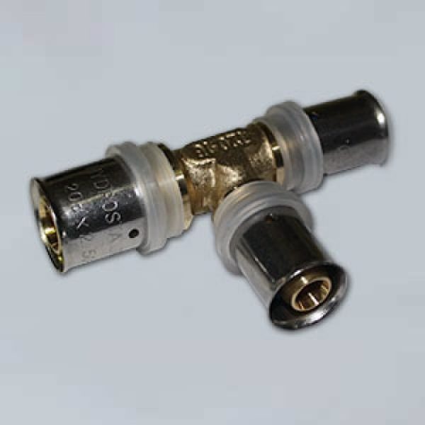 Пресс тройник 20ммх3/4″х20мм с переходом на наружную резьбу Лавита 11160003 (10/60)
