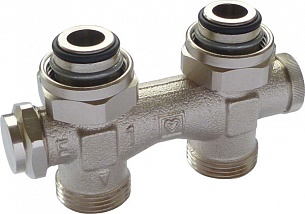 Узел подключения 1/2″х3/4″ для двухтруб. систем с запиранием и настройкой «ГЕРЦ»