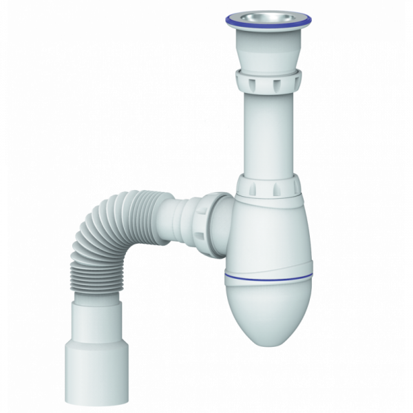 901,00 ₽Сифон бутылочный 1 1/4 х 40 мет.реш. с гиб. тр 40-40/50 (C2010) «АНИ»