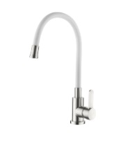 Смеситель для кухни Однорыч. гибкий излив, карт.35мм БЕЛЫЙ (нерж.ст) Ledeme L74004-3