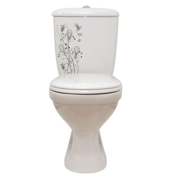 0,00 ₽Унитаз-компакт «ОК» белый косой выпуск Суперкомпакт декор Цветы смыв щелевой