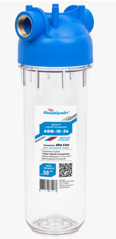 Фильтр магистральный SL10″ лат.рез. 1/2″ прозрачный (Кронштейн+ключ) «Аквабрайт» (12)