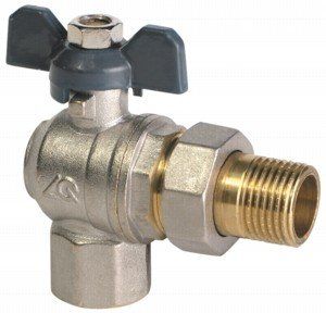 Кран шаровой 1/2″ в/н баб. (американка) угловой никель «Aqualink»