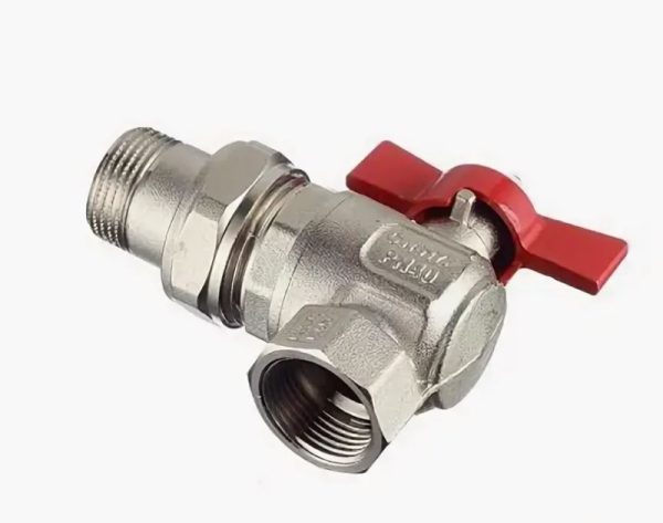 Кран шаровой 3/4″ в/н баб. (американка) угловой никель «Aqualink»