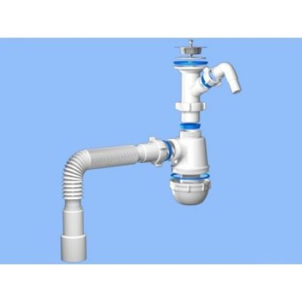 Сифон АНИ Грот 3 1/2″*40 с отводом для стиральной машины, с гибким переливом